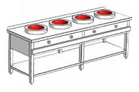 4 конфорки; индукционная и WOK конфорка; 380 В